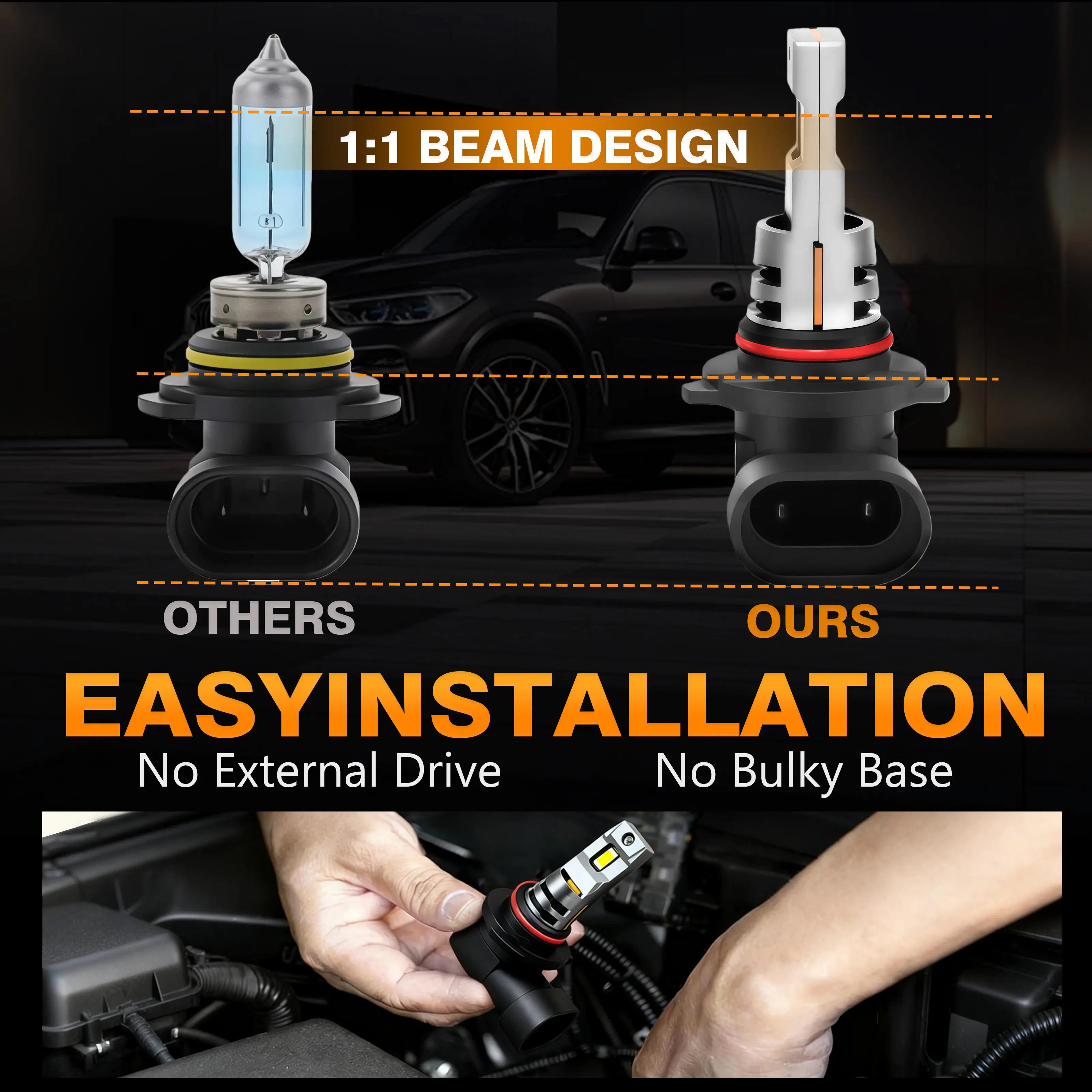 STRUCTURE FIT: The 9005 LED bulbs use a compact body that fits stock housings without external drivers for direct bulb swap in factory headlight sockets
