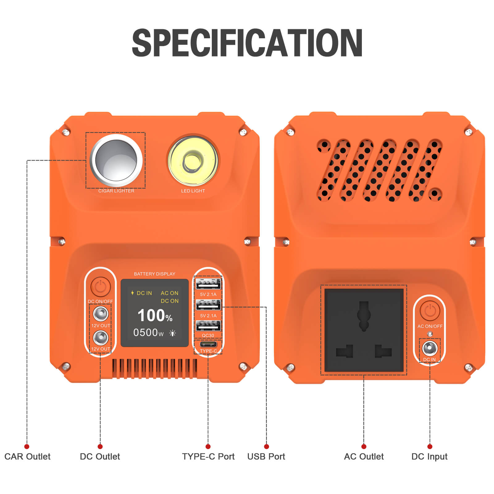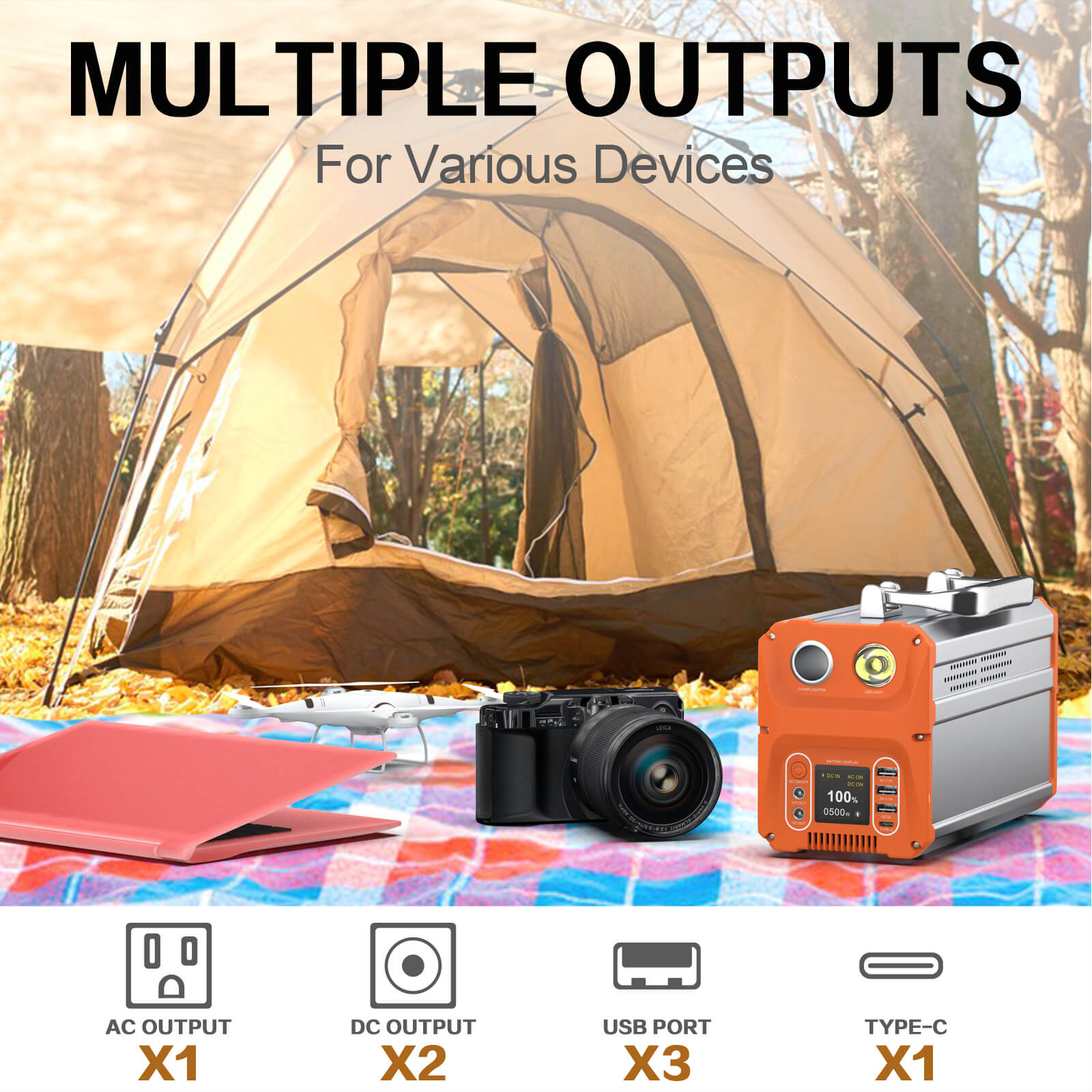 The Inorising MB300 Portable Power Generator comes with multiple output options to meet a variety of power needs in different scenarios. One AC output can safely power household appliances up to 300W, such as laptops, lamps, small refrigerators, and fans, allowing you to enjoy home-like electricity even outdoors. Two DC outputs are ideal for car devices, 12V camping gear, or portable air pumps, making it perfect for camping, RV trips, or remote work sites. Three USB ports make it easy to charge smartphones, tablets, cameras, and other everyday devices, while the Type-C port supports fast charging for modern laptops, tablets, and phones. With all these outputs, the MB300 portable power supply can power multiple devices simultaneously, providing a safe, reliable, and versatile energy solution whether you’re at home, outdoors, or in an emergency.