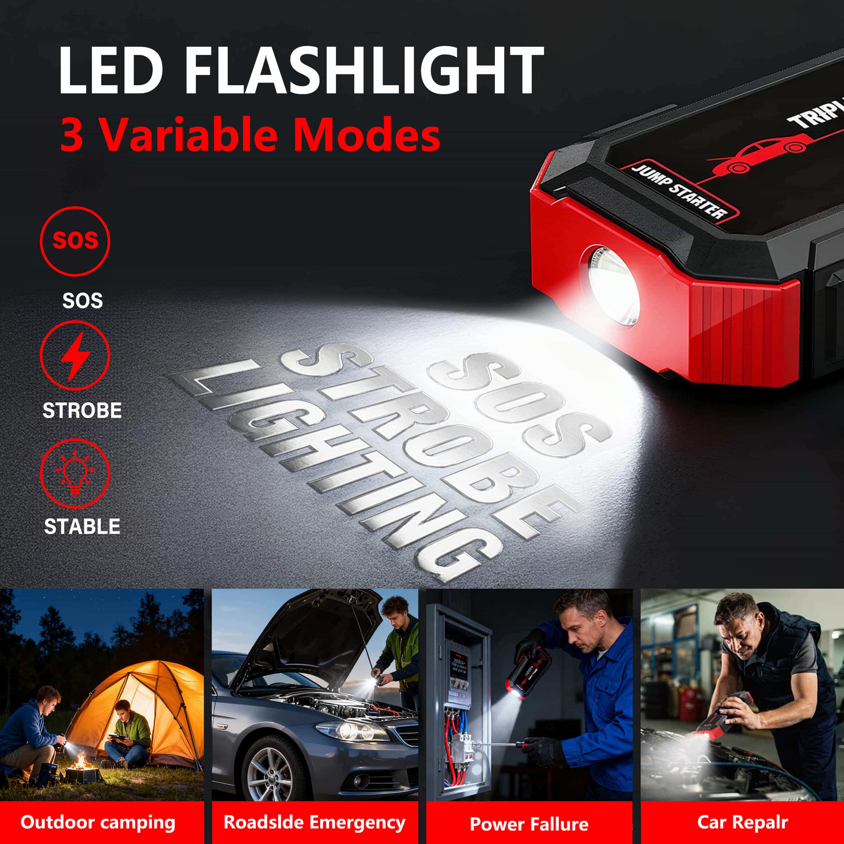 In addition, its 3-in-1 LED light meets your needs for daily lighting and emergency signaling. The MS401 jump booster can be conveniently recharged via Type-C input.
